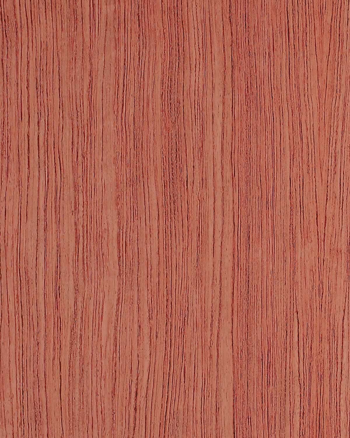 Heartwood ranges from a pinkish red to a darker reddish brown with darker purple or black streaks. Sapwood is a pale straw color and is clearly demarcated from the heartwood. Bubinga is very frequently seen with a variety of figure, including: pommele, flamed, waterfall, quilted, mottled, etc.